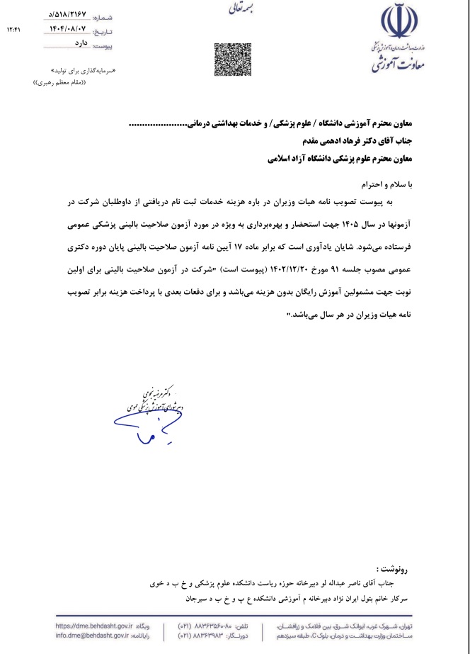 تصویب نامه هیات وزیران در خصوص هزینه خدمات ثبت نام دریافتی از داوطلبان شرکت در آزمون سال 1405
